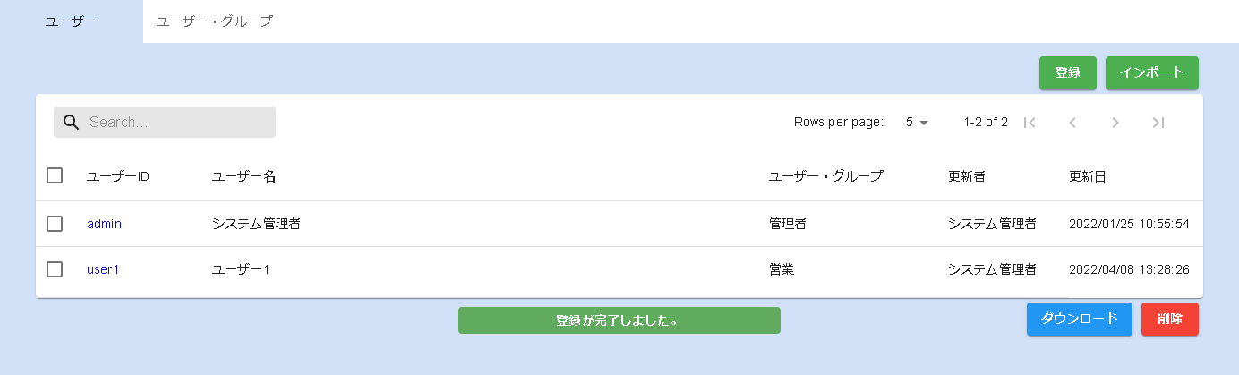 ユーザー・グループ登録