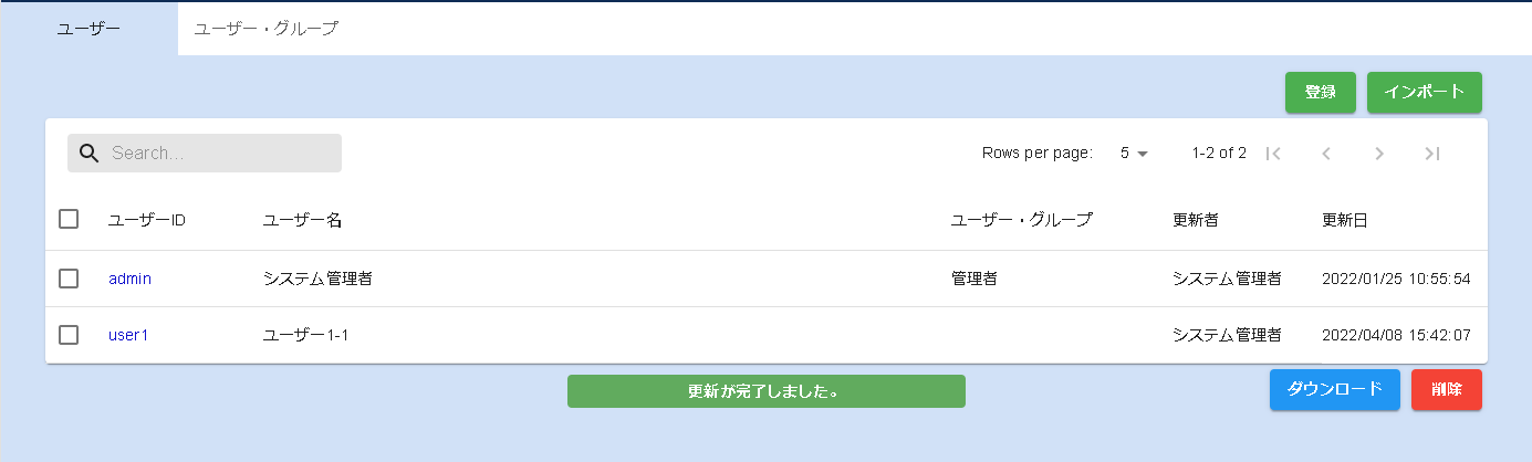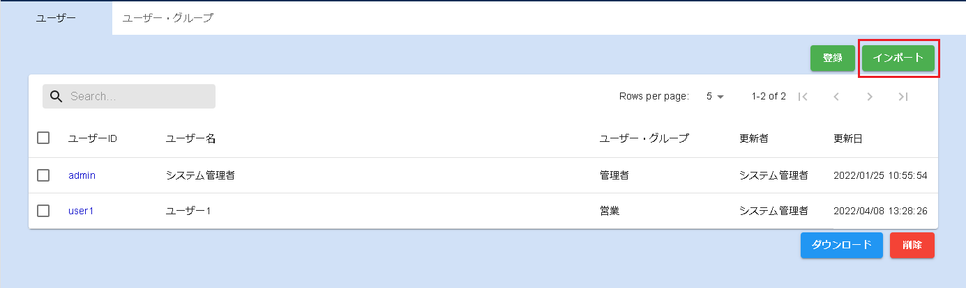 インポートを行うとインポートしたファイルに登録していないユーザーが削除されます。