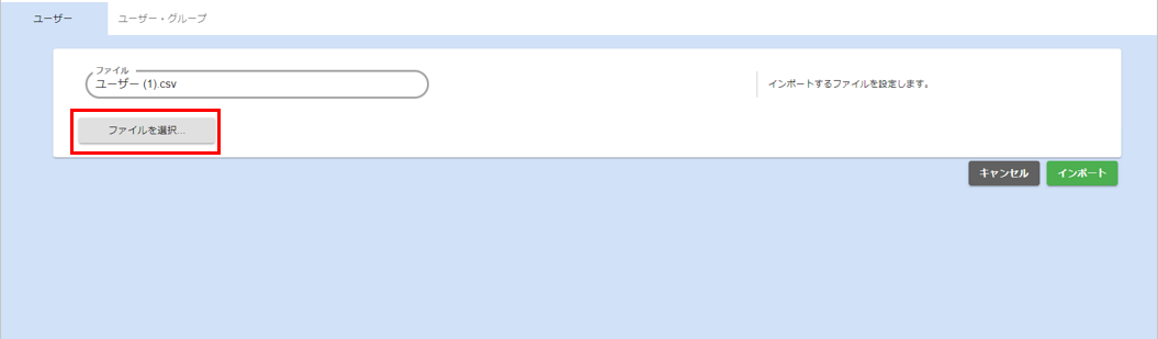 - ファイル選択ボタンをクリックしてファイル選択後、インポートボタンをクリックすると内容を反映することができます。
