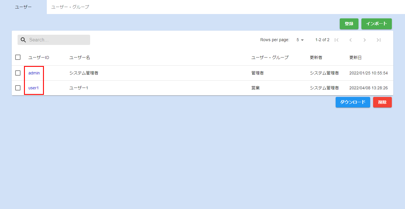 管理画面でユーザー・グループの登録を行います。