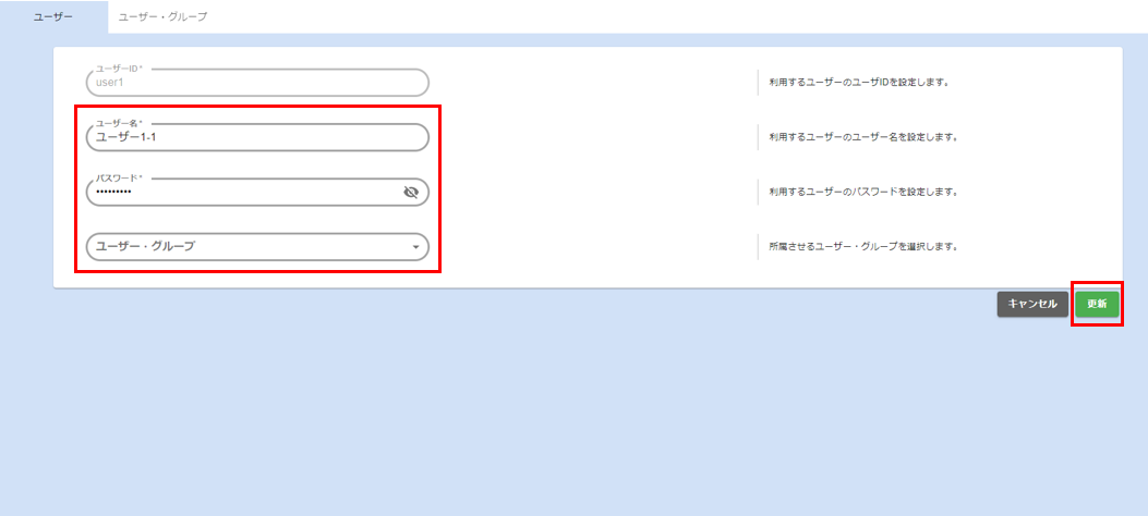 ユーザーの設定値が更新されます。