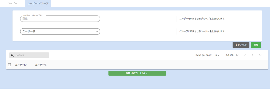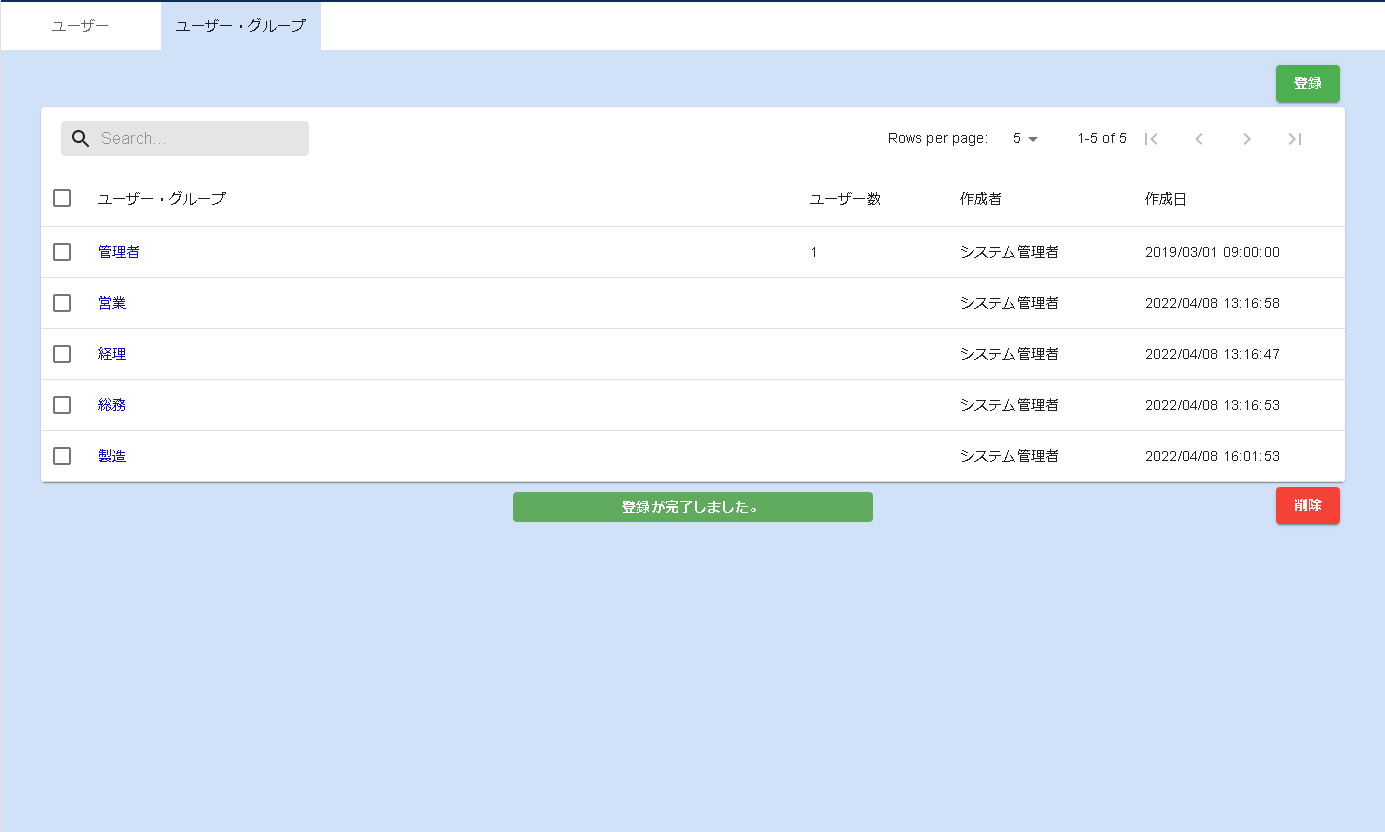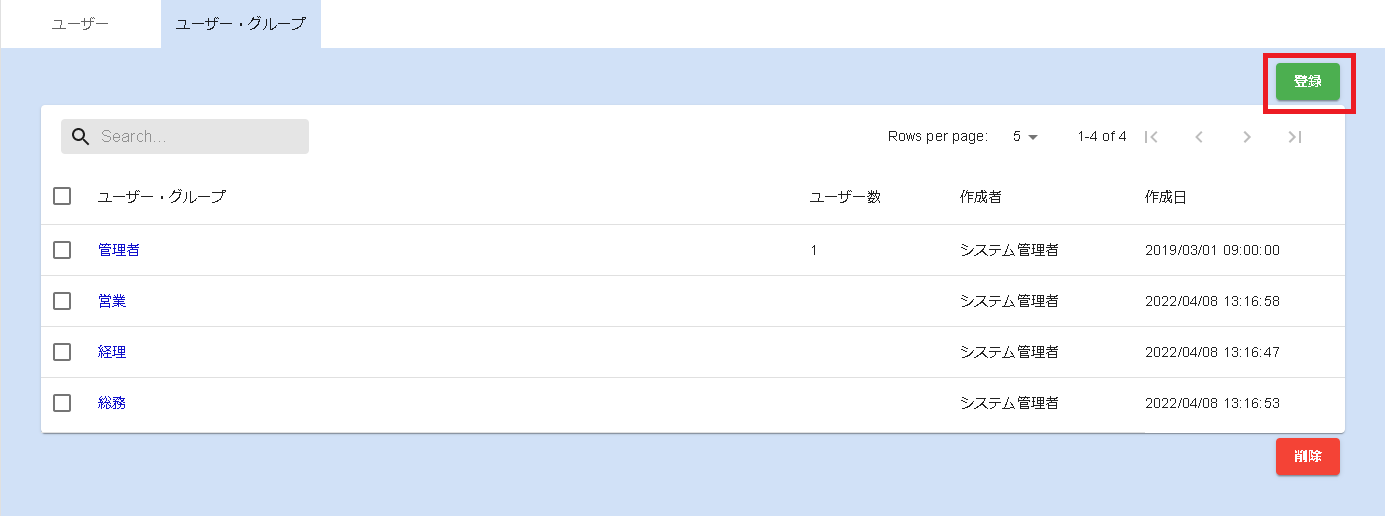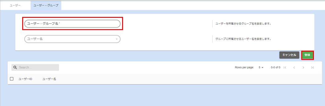 - ユーザー・グループ名入力欄にユーザー・グループ名を入力し、登録ボタンをクリックします。