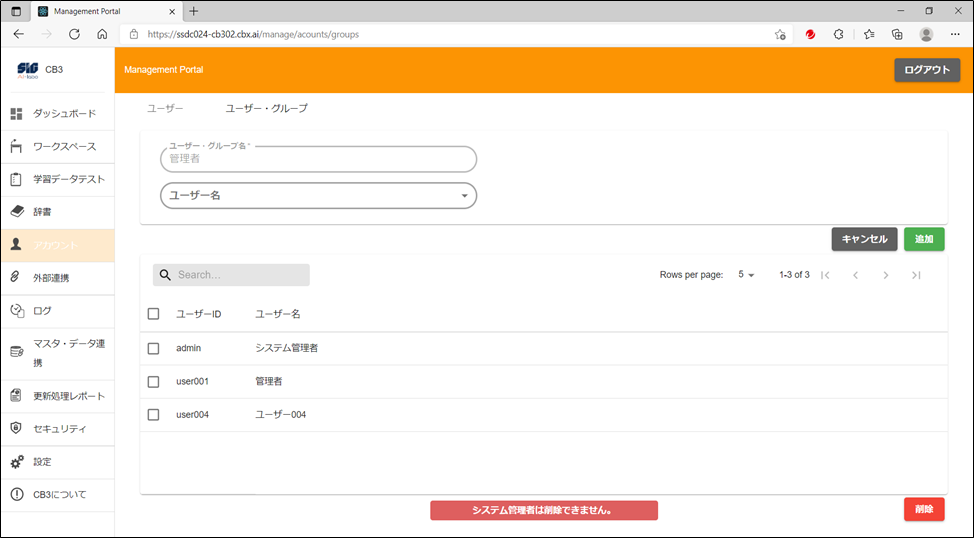 3. 管理者グループから管理者を削除しようとするとエラーとなります。