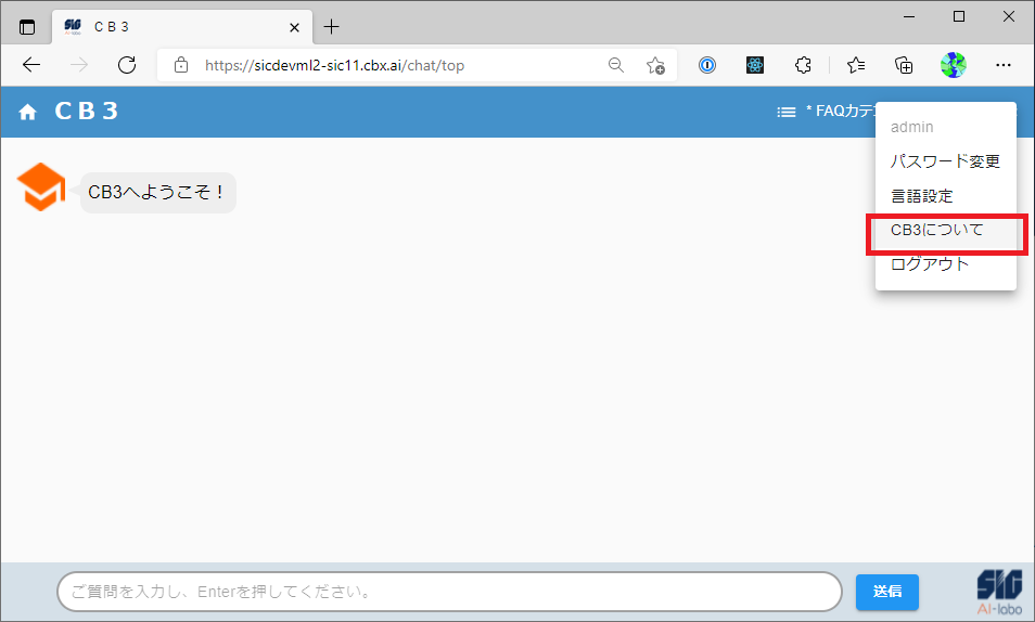 右上のメニューから「CB3について」(製品名ごとに異なります)をクリックし、出てきたダイアログのリンクをクリックするとマニュアルサイトを表示します。