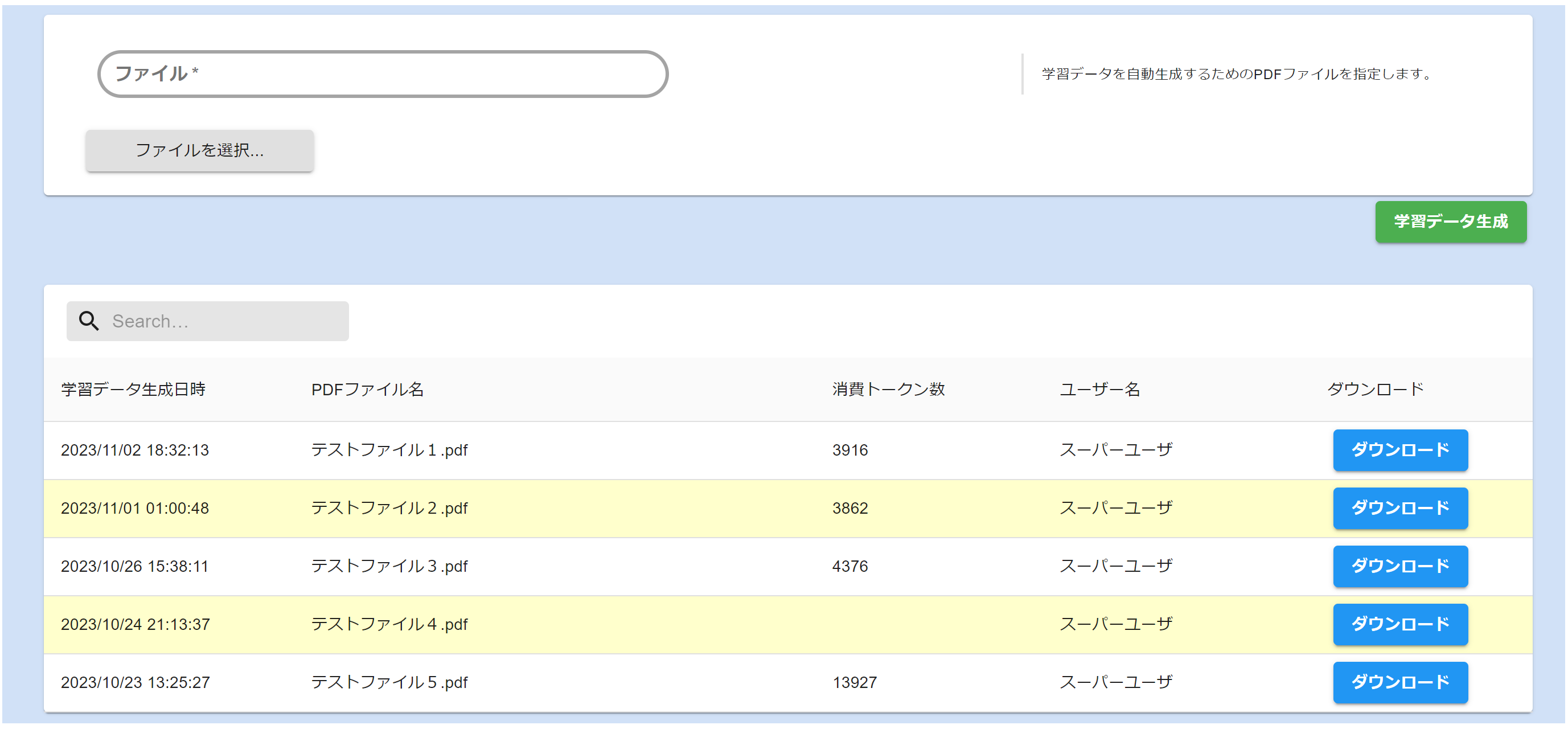 PDFドキュメントファイルを読み込み、記載されている規程や説明などからGPTを利用して質問と回答のセットを作成する機能をβ版として追加しました。作成した質問と回答はCSVとしてダウンロードが可能です。ダウンロードしたCSVを利用して、質問と回答を作成する補助とすることができます。
